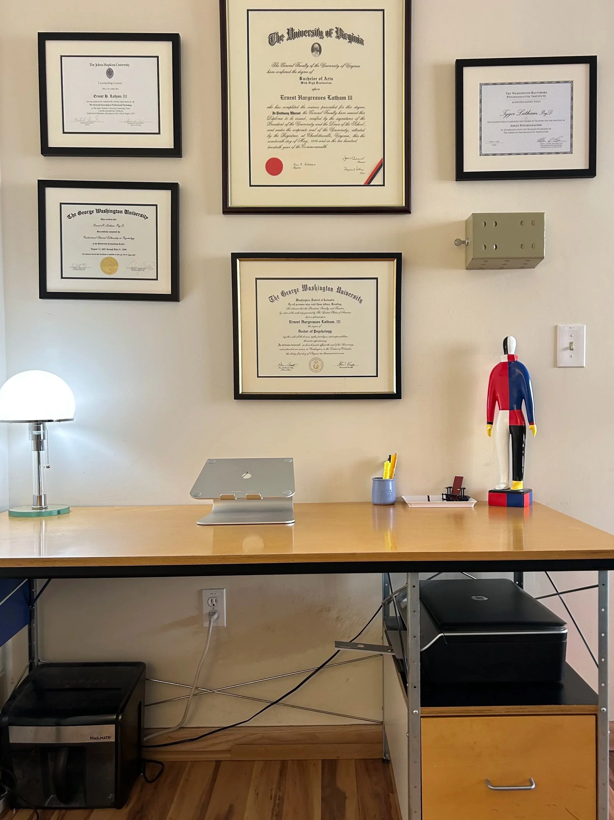 I originally studied Foreign Affairs and German Literature at the University of Virginia, where I graduated with High Honors. Before embarking on graduate school, however, I worked for several years in both the public and private sectors. I have had the fortune to train in a number of clinical settings, including community mental health clinics, public schools, psychiatric hospitals, and university counseling centers. I completed an APA-accredited internship at the Johns Hopkins University and an APPIC-accredited postdoctoral fellowship at the George Washington University, where I also received my doctoral degree. I later completed a two year certificate program in Contemporary Psychoanalytic Couples and Family Therapy at the former Washington Center for Psychoanalysis. This unique clinical program, designed to train clinicians to work with couples and families, enhanced my understanding of family dynamics and the complex interface between the interpersonal and the intra-psychic.